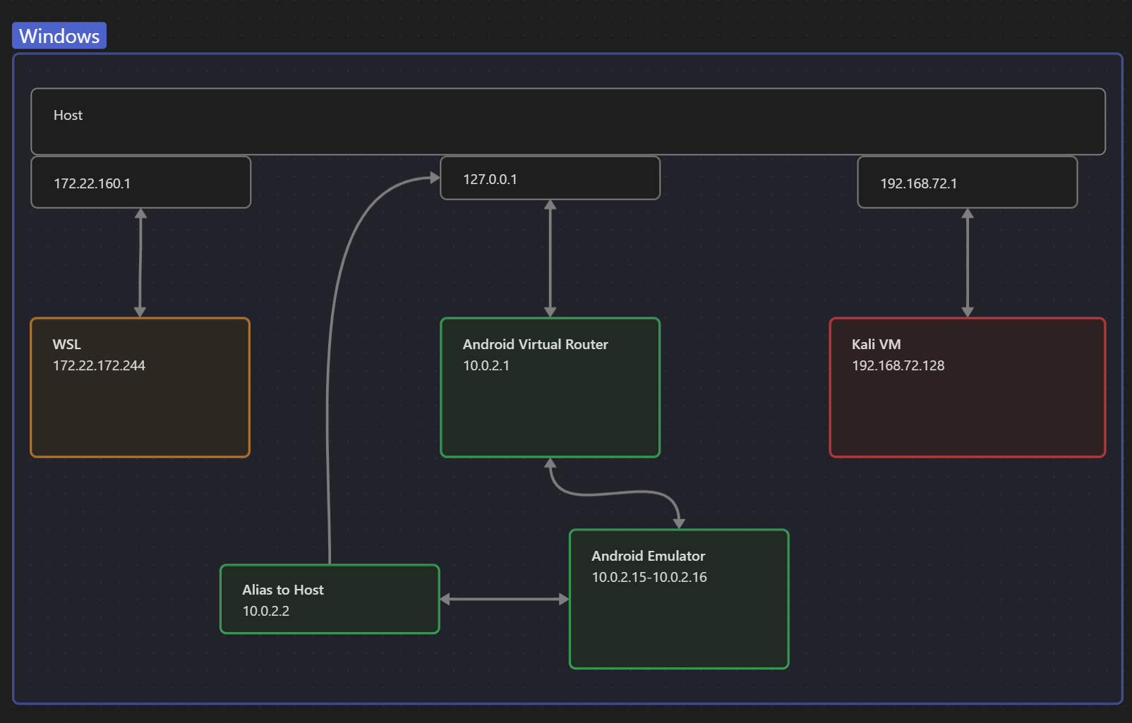 Frida can be divided into two main components: the frida-server and the frida-tools. In our example, we have a frida-server running on any emulator’s interface, but we wanna use the frida-tools installed inside an Ubuntu WSL machine instead of the ones installed on the Windows host system.