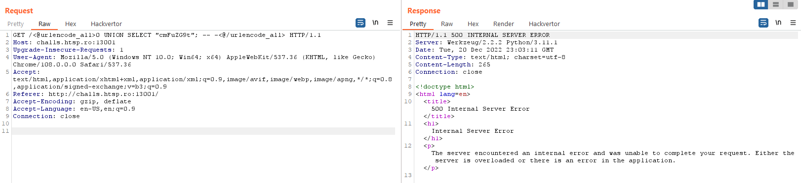 Payload: http://challs.htsp.ro:13001/2 AND 6613=6613