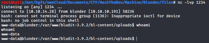Now that we have a php reverse shell on the server we just have to listen with netcat waiting for the connection and run the php file.