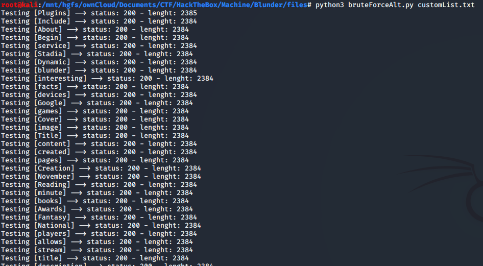 root@kali:/HackTheBox/Machine/Blunder# cewl -m 5 -w customList.txt http://10.10.10.191