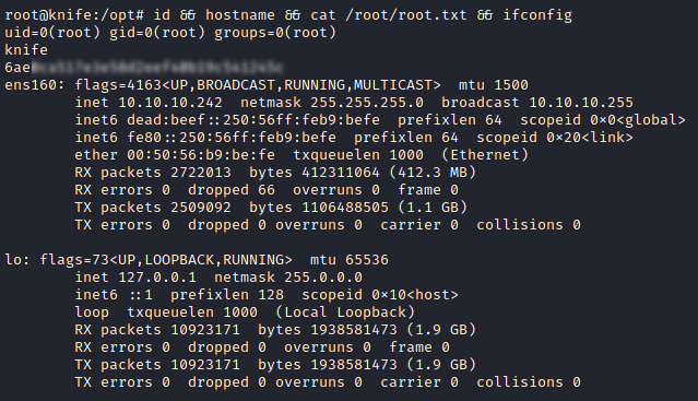 root@knife:/opt# id && hostname && cat /root/root.txt && ifconfig