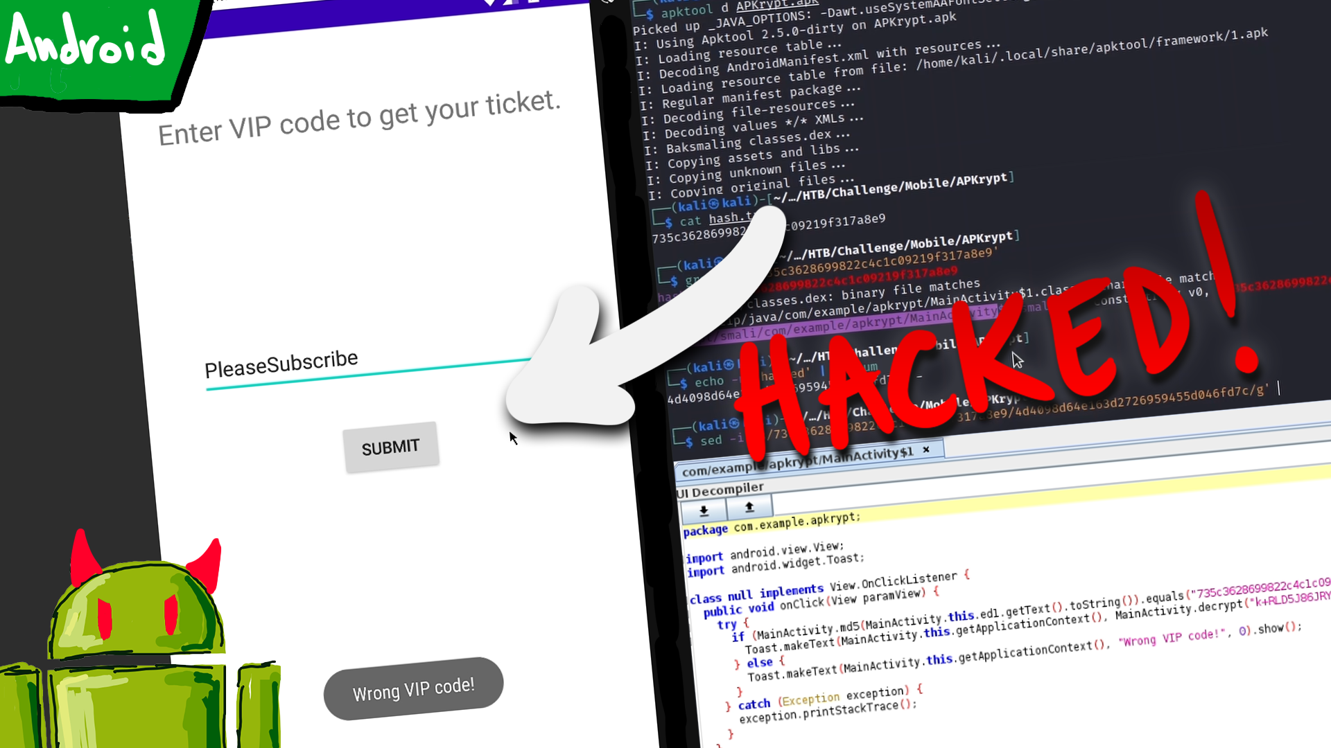 Learn how to disassemble, decompile, reverse, analyse and patch an easy APK in this Android HackTheBox challange called APKrypt.
