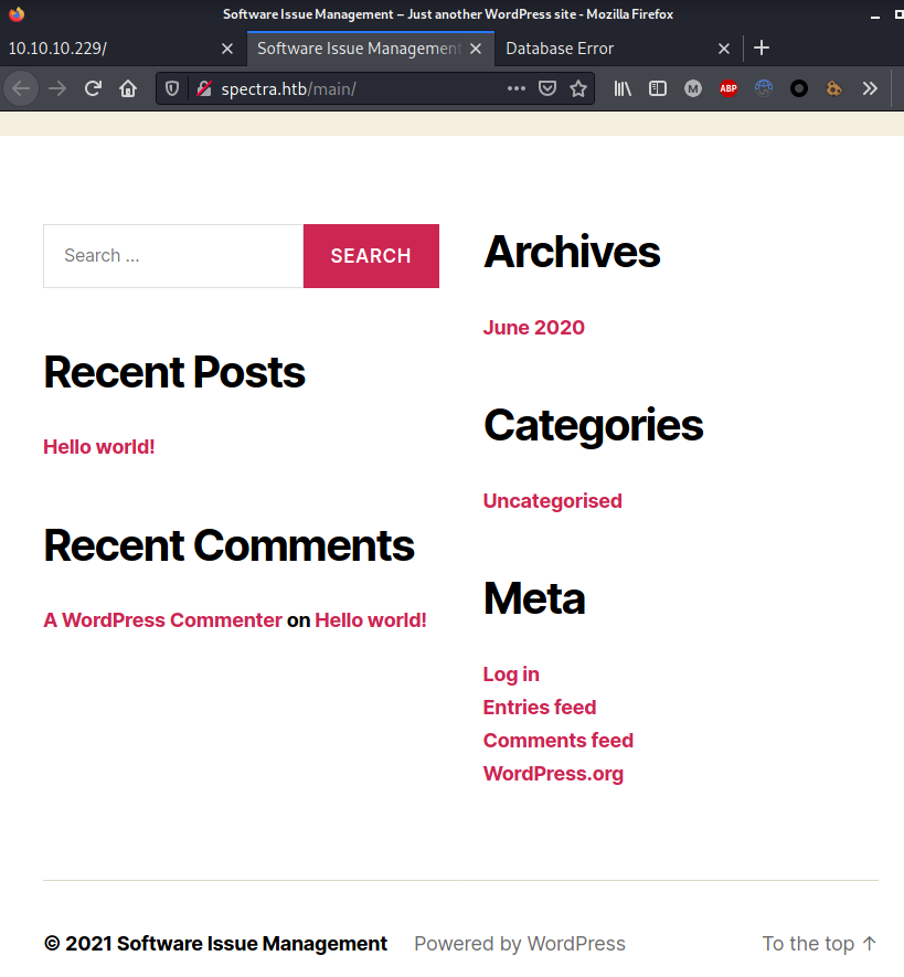 | - http://spectra.htb/main/?feed=rss2, <generator>https://wordpress.org/?v=5.4.2</generator>