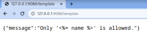 At this point, we can create a template that uses custom delimiters containing a simple command execution, so that the while loop searching for the single allowed placeholder is bypassed: