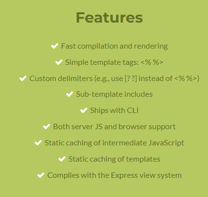 The official EJS documentation 1 pointed us to some very interesting options and features. Among them, the one that made our curiosity clicks was the support for custom delimiters.