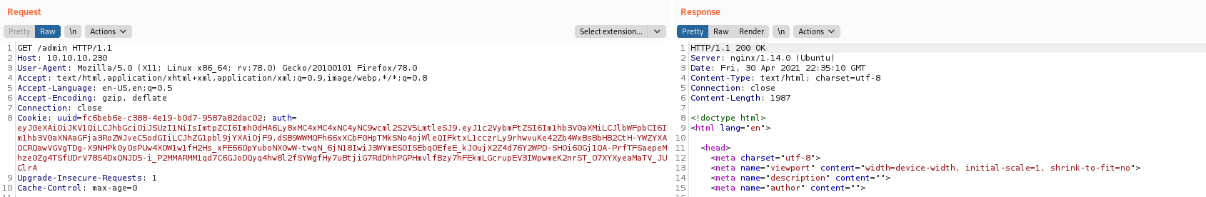 Then following this other Akamai article an arbitrary JWT containing admin privileges was created :