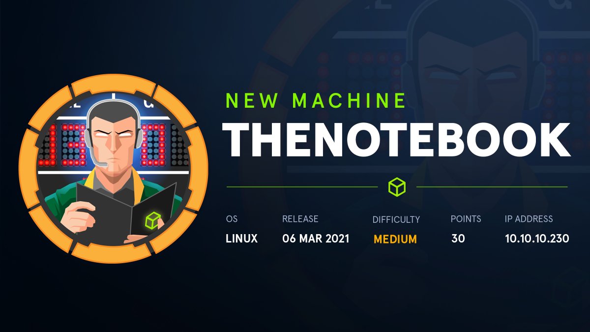 TheNoteBook is a medium difficulty Linux box running a custom web application vulnerable to authorization bypass caused by a SSRF that allows to validate arbitrary JWT.