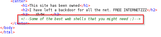 Visiting the site, we discover that the machine has been owned and there is a backdoor
